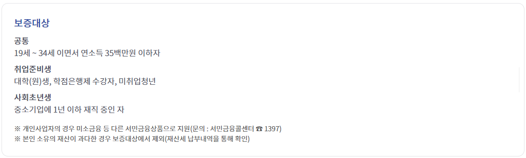 성공적인 사회 진출과 안정적인 경제활동을 지원하는 서민금융 상품입니다.